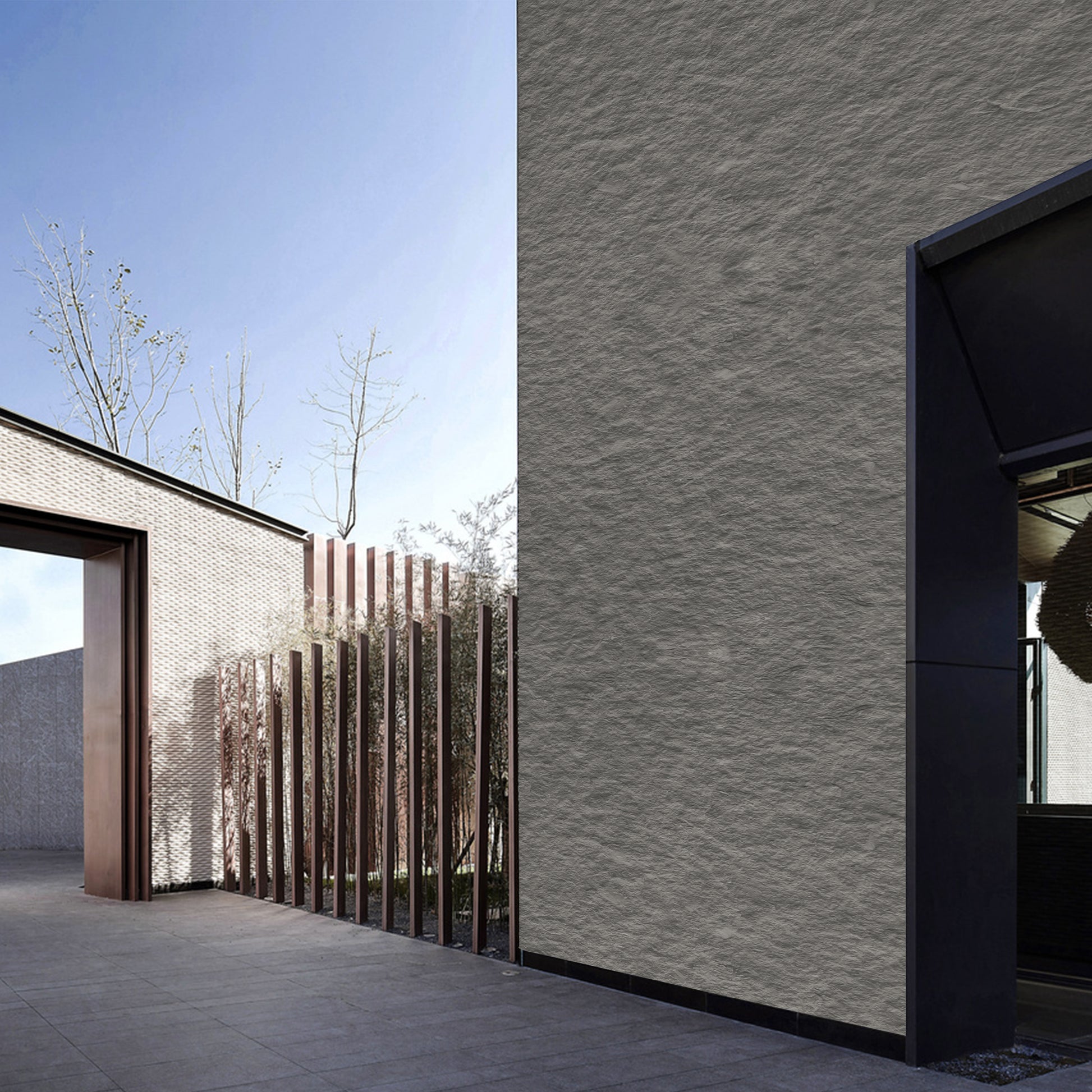 Tấm ốp đá uốn cong - Mã: MS Rough Granite Stone (Dark Grey)
